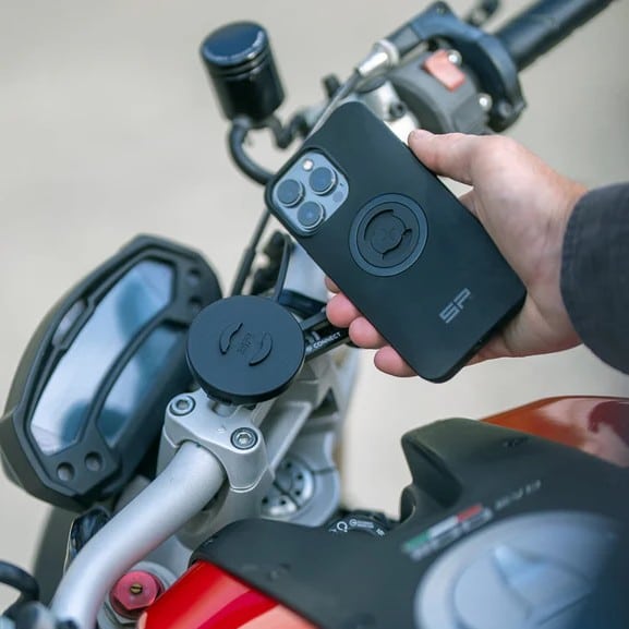 Udskift blot det kompatible monteringshoved med SP Connect Charging Module SPC+, og monter din smartphone direkte på laderen med en 90° rotation med uret. Opladningsmodulet er 360° justerbart, så din smartphone kan monteres både vertikalt, horisontalt eller et sted der imellem alt efter din smag.
