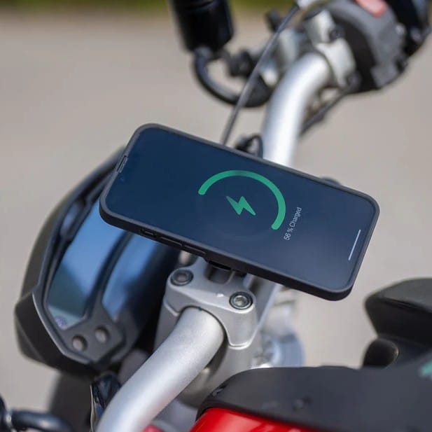Med SP Connect Charging Module SPC+ kan du oplade din telefon induktivt, mens du kører. Det giver et fuldt opladet batteri – 100% vejrbestandigt.