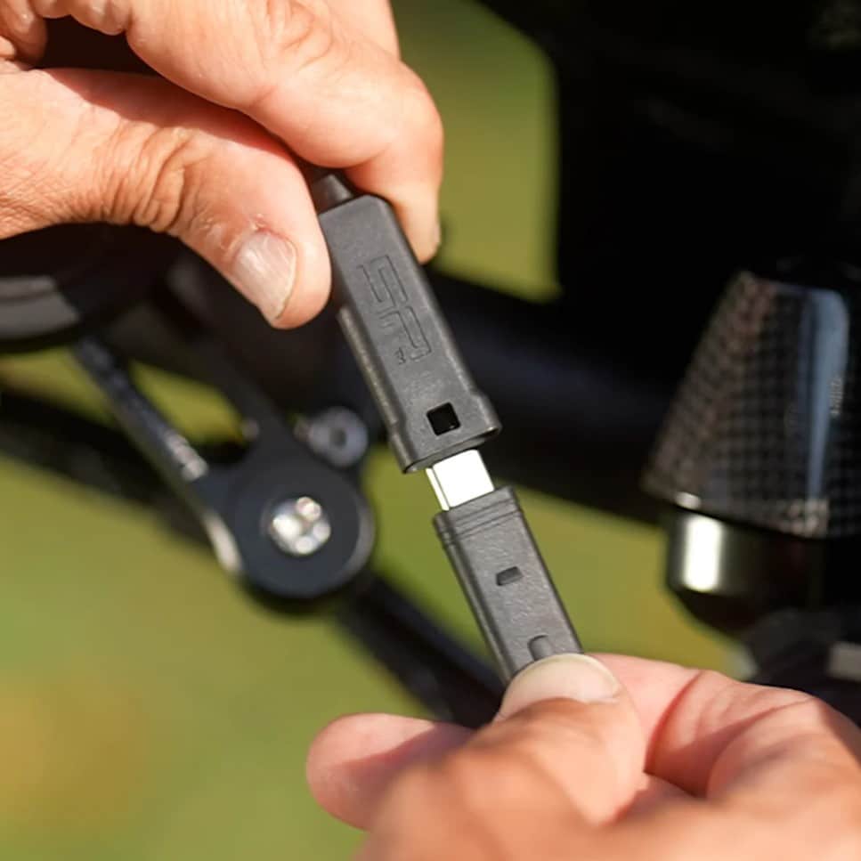 Tilslut blot de frie ender af kablet til motorcyklens batteri eller tændings + og tilslut USB-C-stikket til opladningsmodulet med eller uden antivibration. Kablet har en længde på 150 cm, er udstyret med en integreret spændingsomformer og er 100% vejrbestandigt.