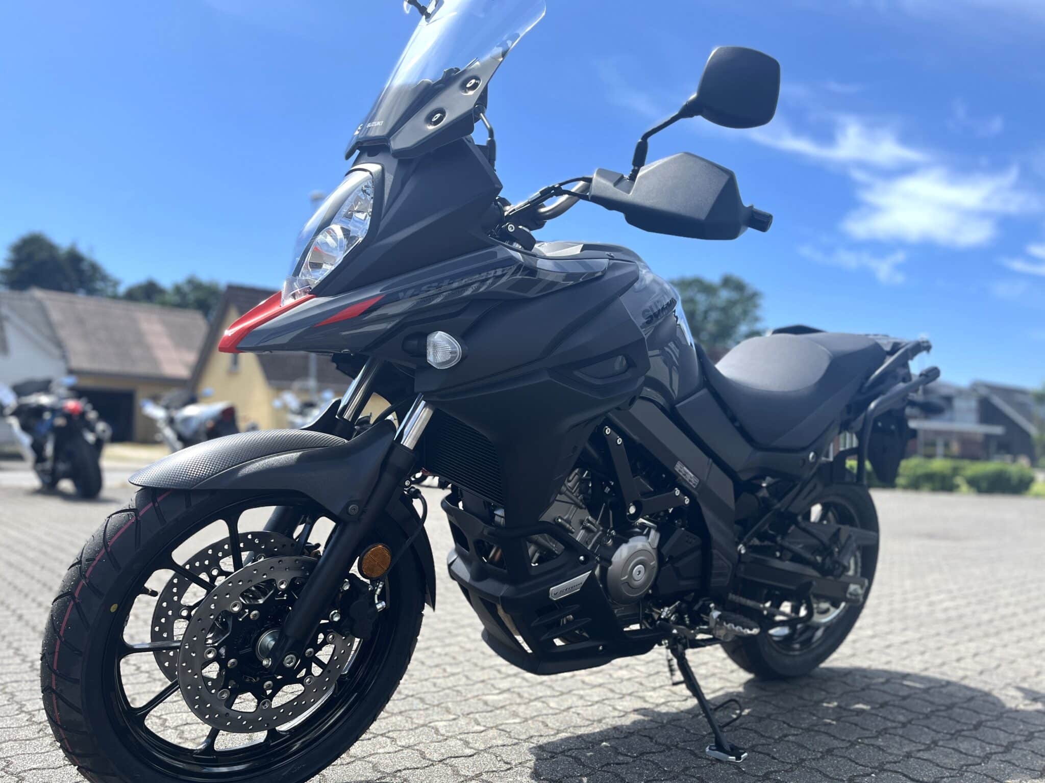 SUZUKI DL650 V-Strom og DL650XT V-Strom er med god grund en af de mest købte adventure motorcykler på det danske marked. Cyklen er solidt gennemtestet af et hav af tilfredse motorcyklister, der over en lang årrække tilsammen har tilbagelagt mange tusinder af kilometer. Kørestilingen er helt uovertruffen, og man kan på behageligste vis fortsætte derudaf i timevis – kilometer for kilometer. Motoren er bundsolid og trækker jævnt op gennem registreret. Motorjournalister verden over kommer ofte med spørgsmålet efter kortere eller længere tests – ”Hvad mere har man brug for?!! ”Og dette spørgsmål er velbegrundet; SUZUKI DL650 V-Strom kan bruges til det meste: Hverdagsbrug til og fra arbejde uanset vejret. Sjove ture på snoede landeveje eller eventyr på grusveje. Helt perfekt til længere distancer uanset om man køre solo, med masser af oppakning eller med passager.