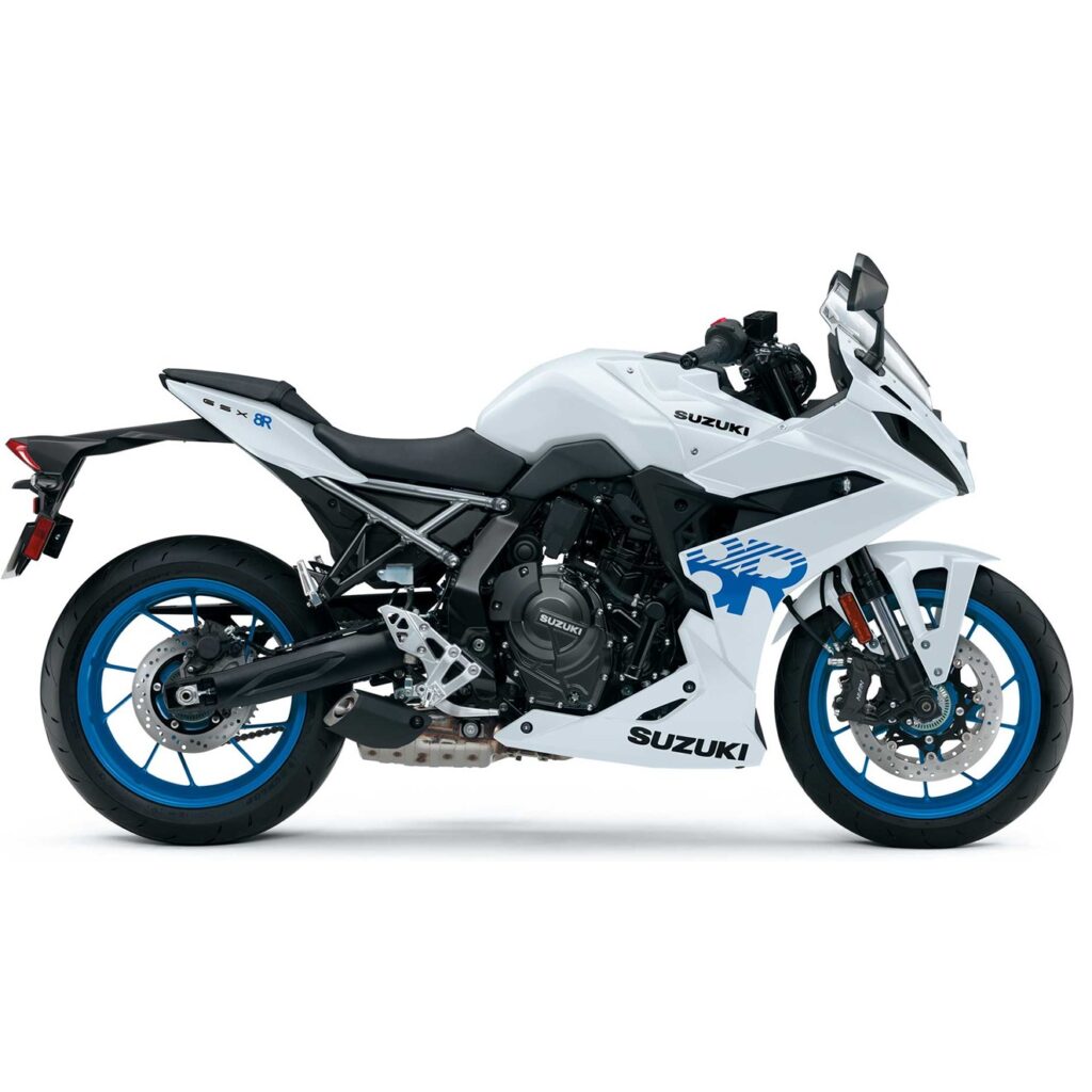 SUZUKI GSX-8R er udstyret med en 776 cc, væskekølet, DOHC parallel-twin motor, som leverer omkring 83 Hk og 78 Nm. Denne motor kombinerer stærk respons i mellemområdet med et jævnt fordelt træk, som gør den både sjov at køre og relativt let at håndtere — også for kører med A2-kørekort.