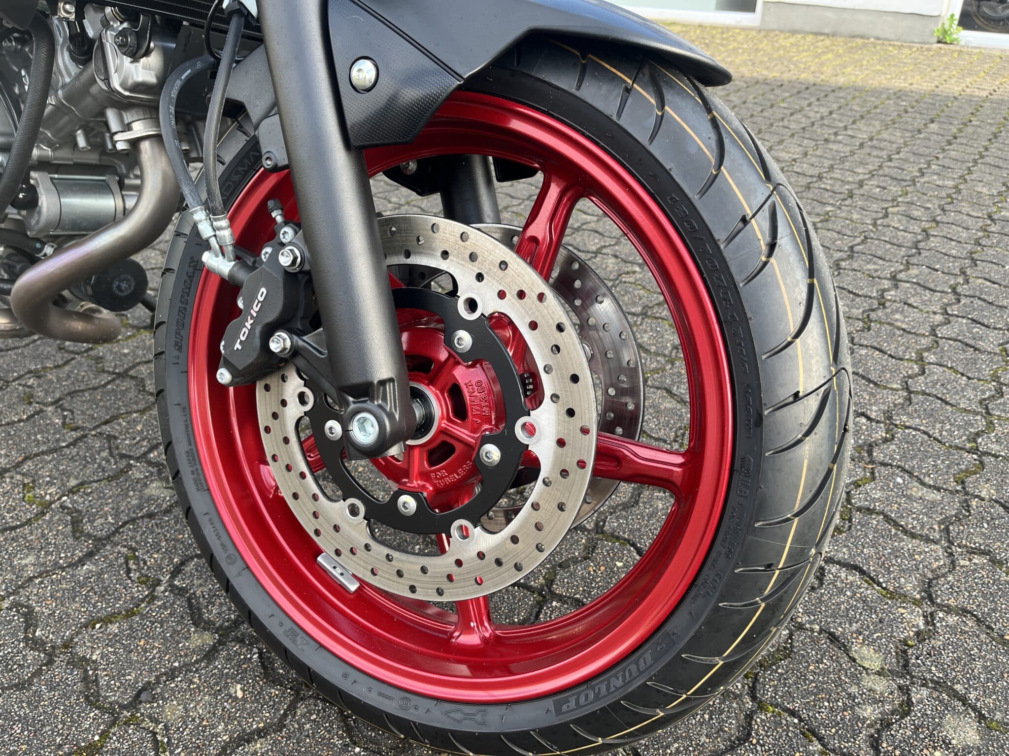 Fuldstændig som ny SUZUKI SV650 2024 model registreret første gang i marts 2025 og har kun kørt 670 Km. Der er monteret en original bagagebærer.