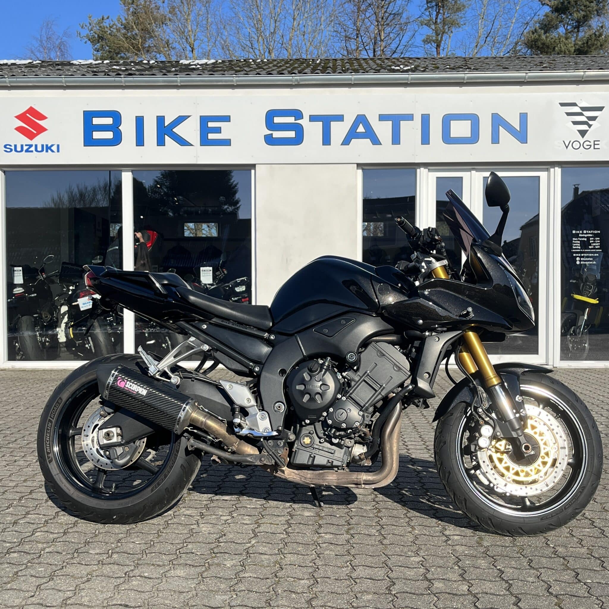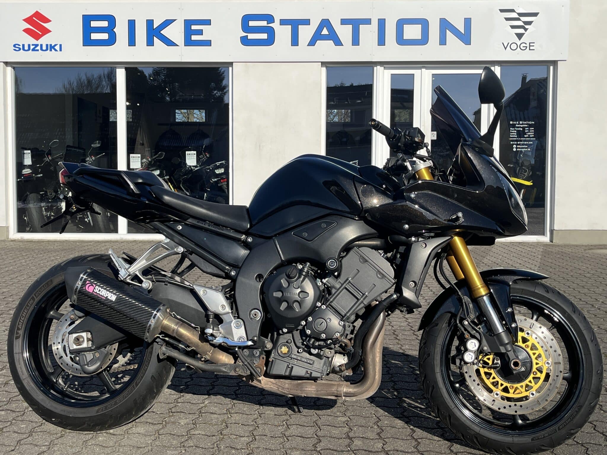 YAMAHA FZ1-SA er med sine 150 Hk, den fede lyd fra Scorpion carbon slip-on udstødningen og den oprejste kørestilling med garanti en virkelig underholdende motorcykel – både på de store hovedveje og de lidt mindre og snoede veje. Med sin topkåbe og det lidt højere kåbeglas, gør den sig også godt til almindelig touring, pendling samt ferien på 2 hjul. Den har ud over den potente udstødning også en del anden udstyr, som tilsammen giver et endnu frækkere look; BARRACUDA håndtag og styrender, BARRACUDA bremse- og koblingsgreb, BARRACUDA LED-blink, kort BARRACUDA nummerpladeholder, BARRACUDA crash pads. Der er relativt nyt MICHELIN ROAD 6 bagdæk på, og den bliver leveret med nyt matchende fordæk.